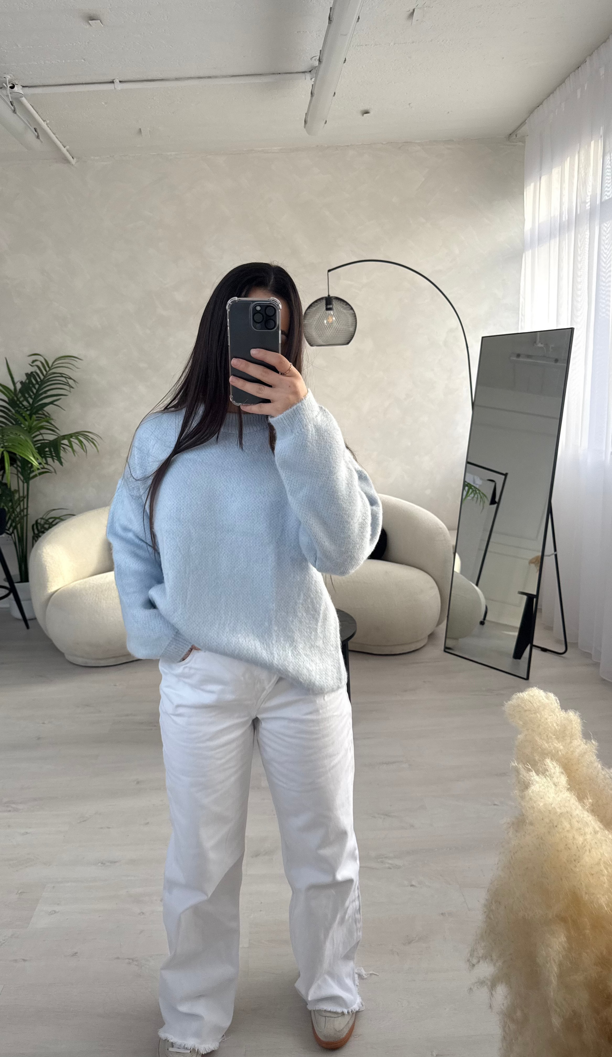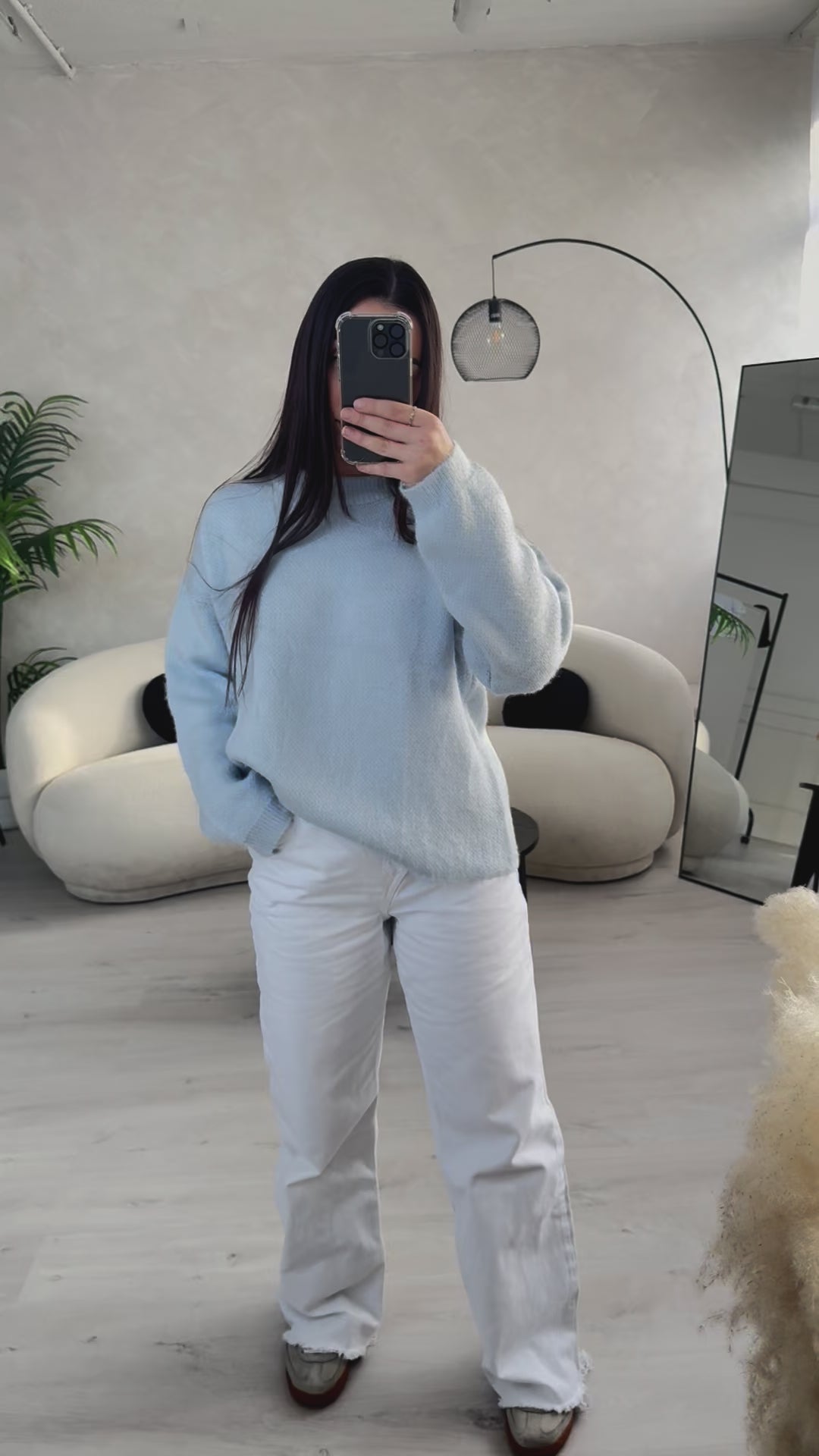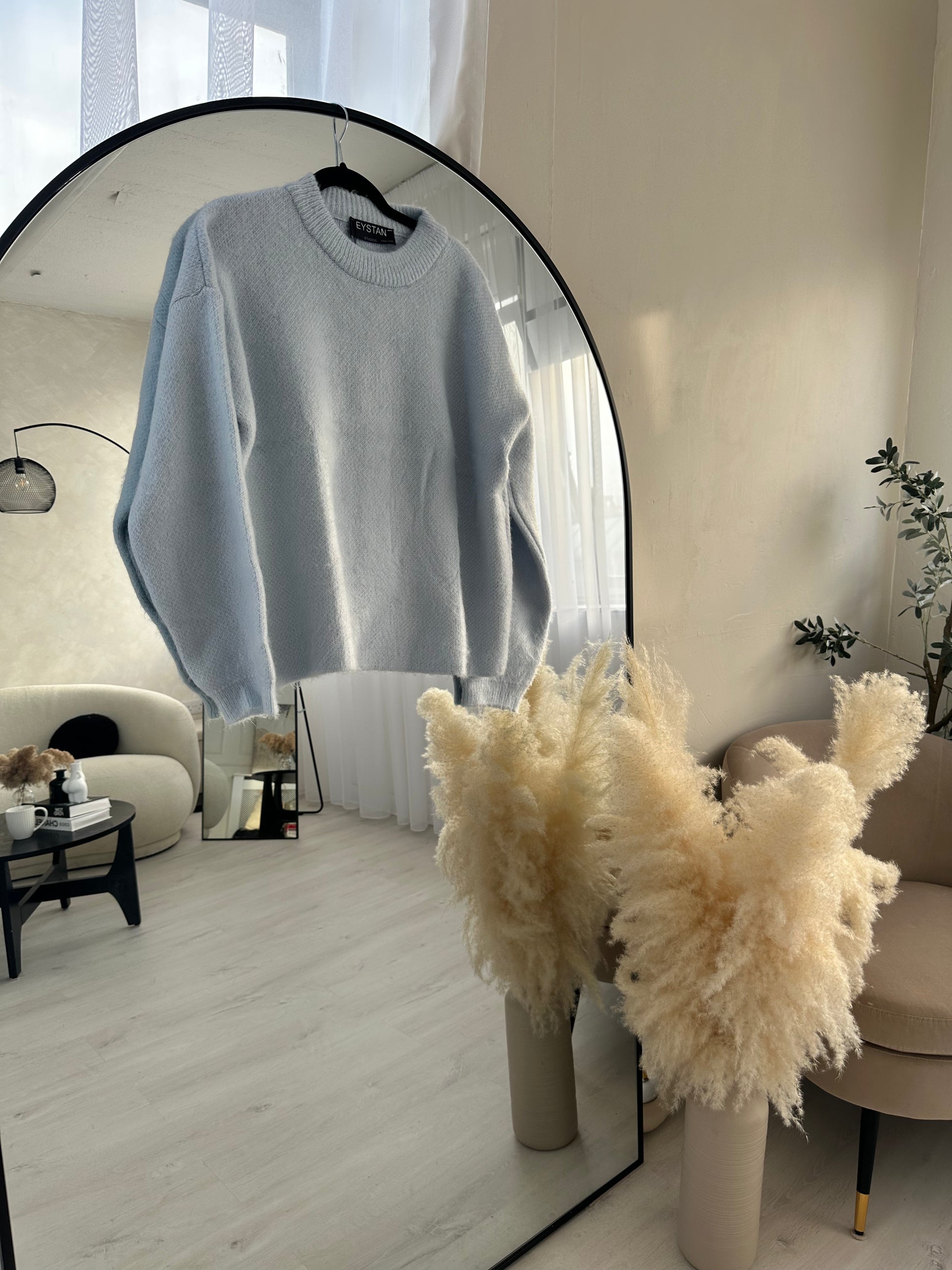 Stay cozy in style with our Knit Jumper. Made of soft blue knit, this oversized jumper is perfect for any weather. Embrace comfort and fashion in one!